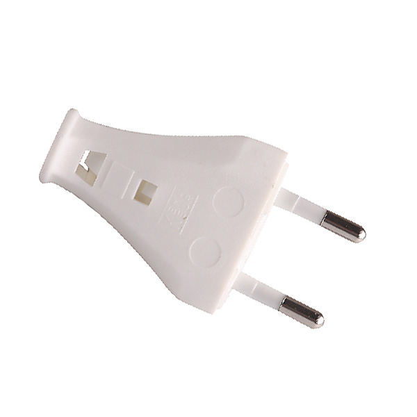 Kaiser eurostekker klapstekker plat zonder randaarde wit uitsluitend voor H03VV-F 2x0,75mm2 met krimp bevestiging voor de draden, speciale tang nodig, zie accessoires