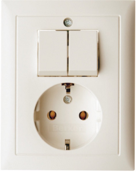 Berker S.1 combinatie wandcontactdoos 1 voudig met randaarde zonder spreidklemmen en serieschakelaar cremewit RAL1013 glanzend