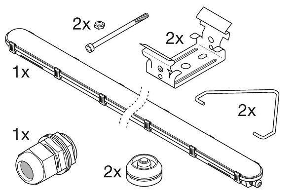 Ledvance Damp Proof 46W 1500mm 4000K kleur 840 IP65 polycarbonaat kap en RVS dekselklemmen voor doorvoerbedrading zie accessoires
