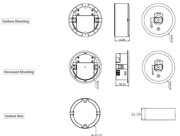 | Außenmaße | Ø140mm | ? De buitenmaat is de grootste maat, vaak van de lampkop. |