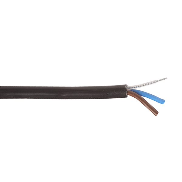 VMvS H03VV-F 2x0,75mm2 rond zwart met staaldraad diameter 5,8mm rol 100m Pendelsnoer met gecoate staaldraad erin (1,5mm met coating, 0,8mm zonder coating) past door draadbuis M10x1