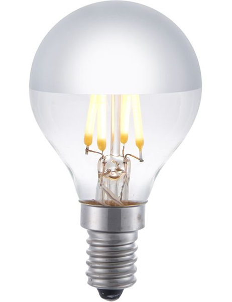 SPL filament LED kopspiegel kogellamp 4W E14 230V 2500K kleur 925 zilver dimbaar